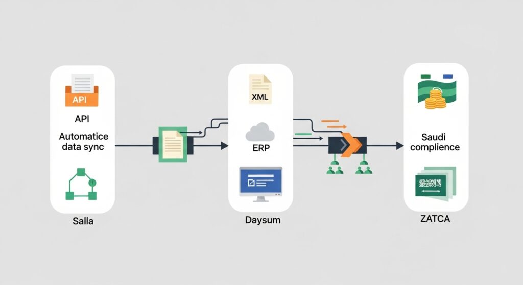 هذا الربط يتيح مزامنة البيانات المالية والفواتير بين المتجر والنظام المحاسبي لحظيًا.