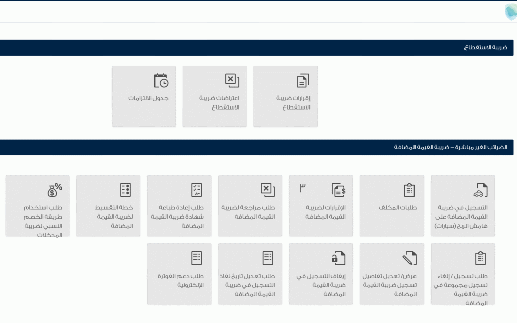 - سجّل دخولك: ادخل إلى حسابك في البوابة الإلكترونية لهيئة الزكاة والضريبة والجمارك، وتوجه إلى قسم “الضرائب غير المباشرة – ضريبة القيمة المضافة”.
