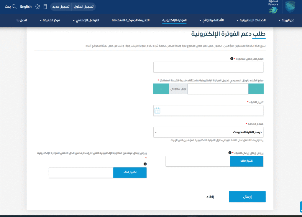 - اطلب الدعم: داخل القسم، ستجد أيقونة واضحة لـ “طلب دعم الفوترة الإلكترونية“، اضغط عليها.